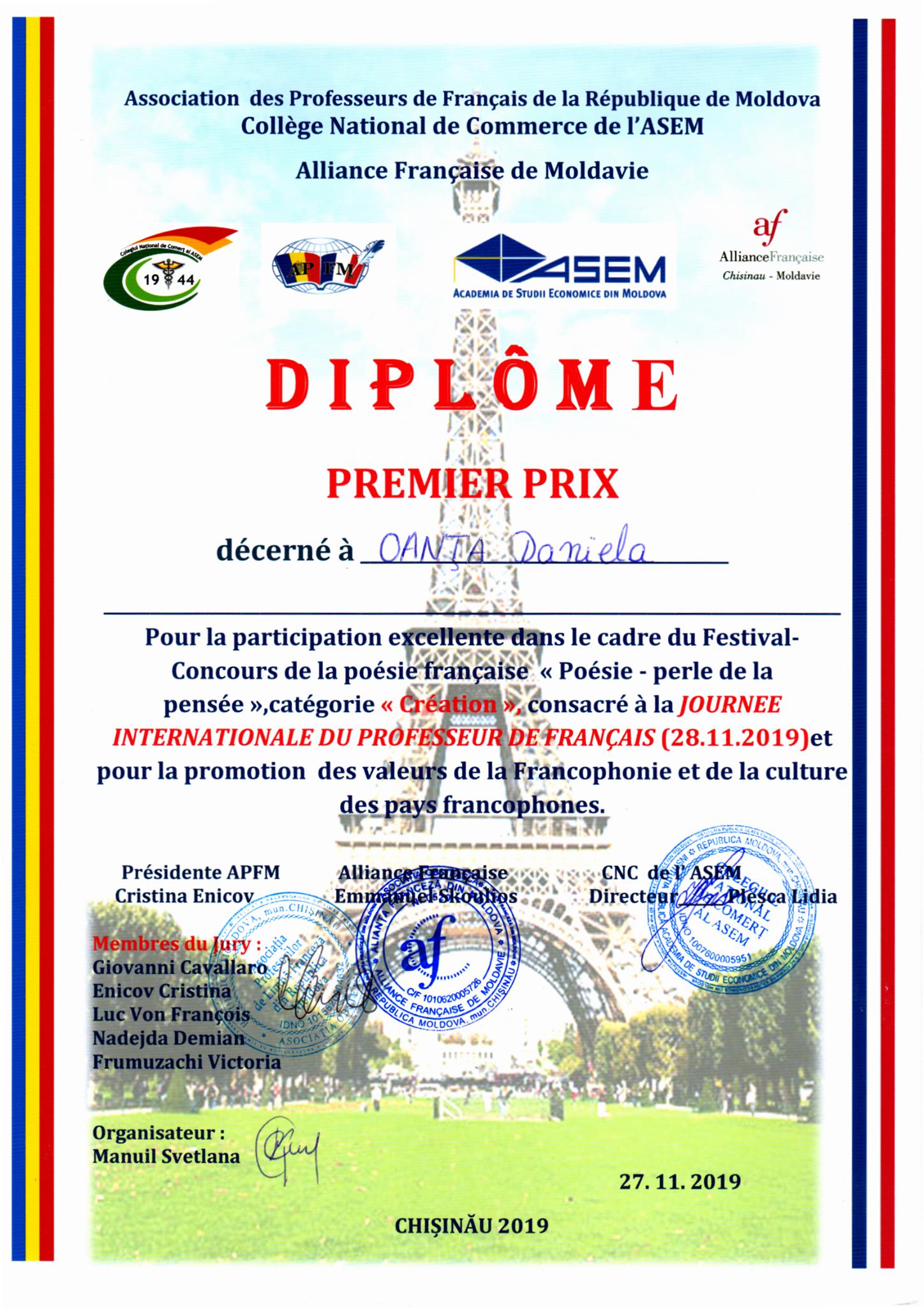 Concurs de la poesie francaise „Poesie- perle de la pensee”